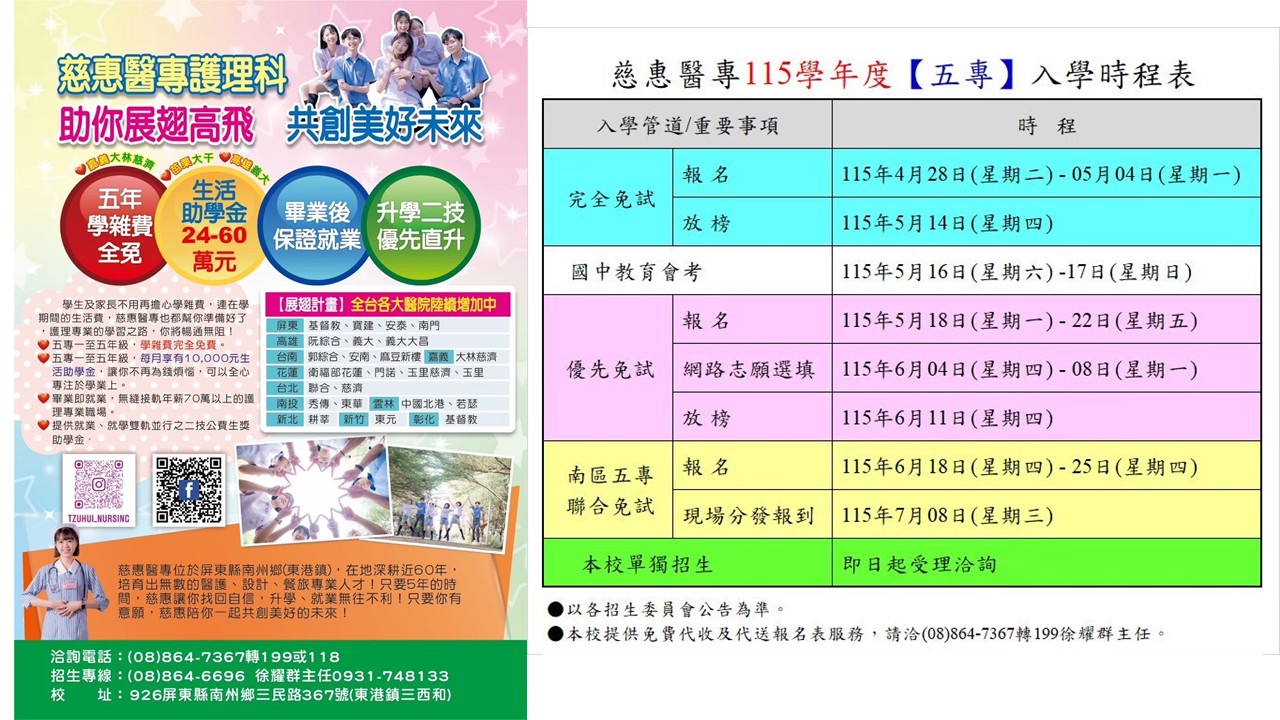 慈 惠 醫 專 護 理 科 招 生 懶 人 包
